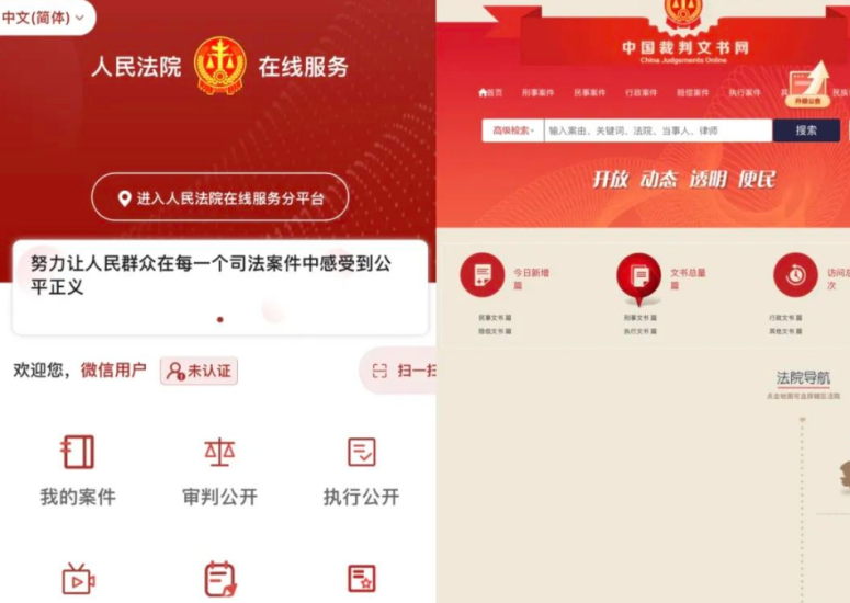 最后,在裁判文书网和人民法院服务的小程序上,也可以查询到立案情况。